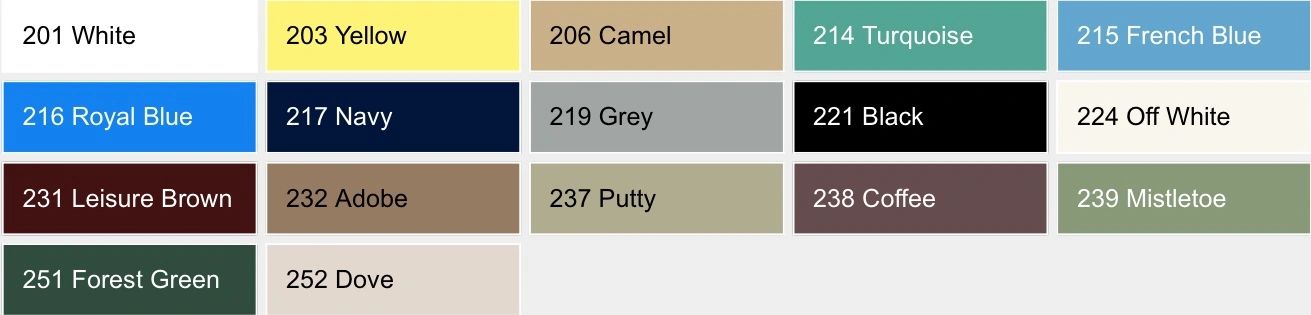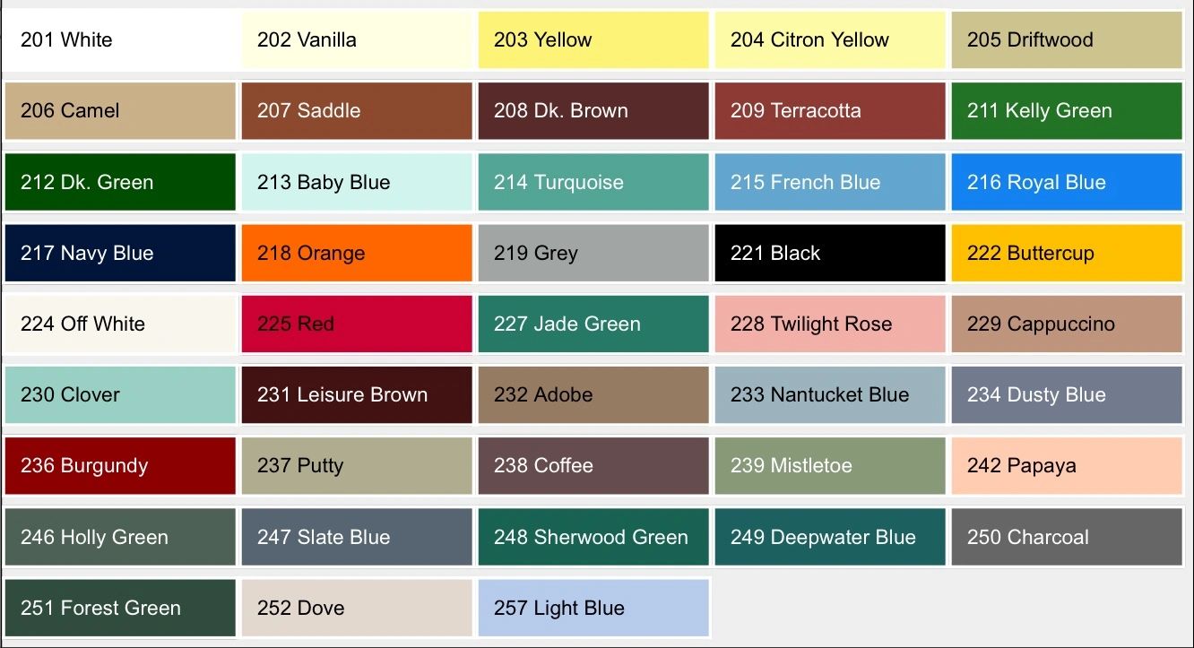 Color chart for 5/8" Vinyl lacing